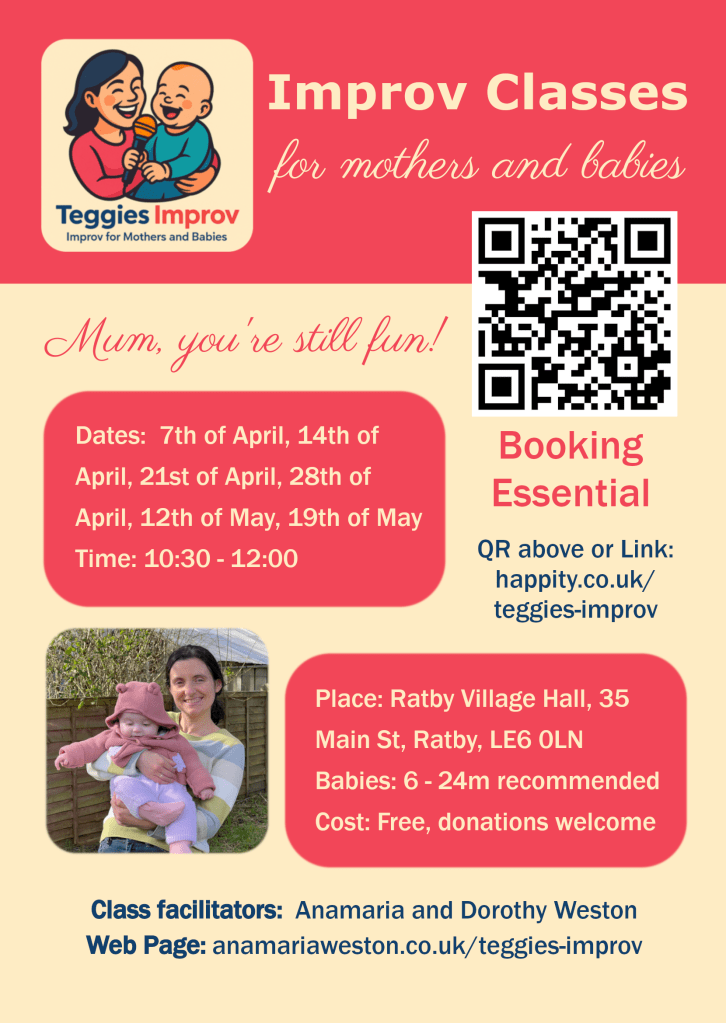 Aim of Teggies Improv: Strengthen the bond between mothers and their babies through the joyful art of improvised comedy theatre! We would also like to form friendships and a support network between mothers in the local and nearby areas.